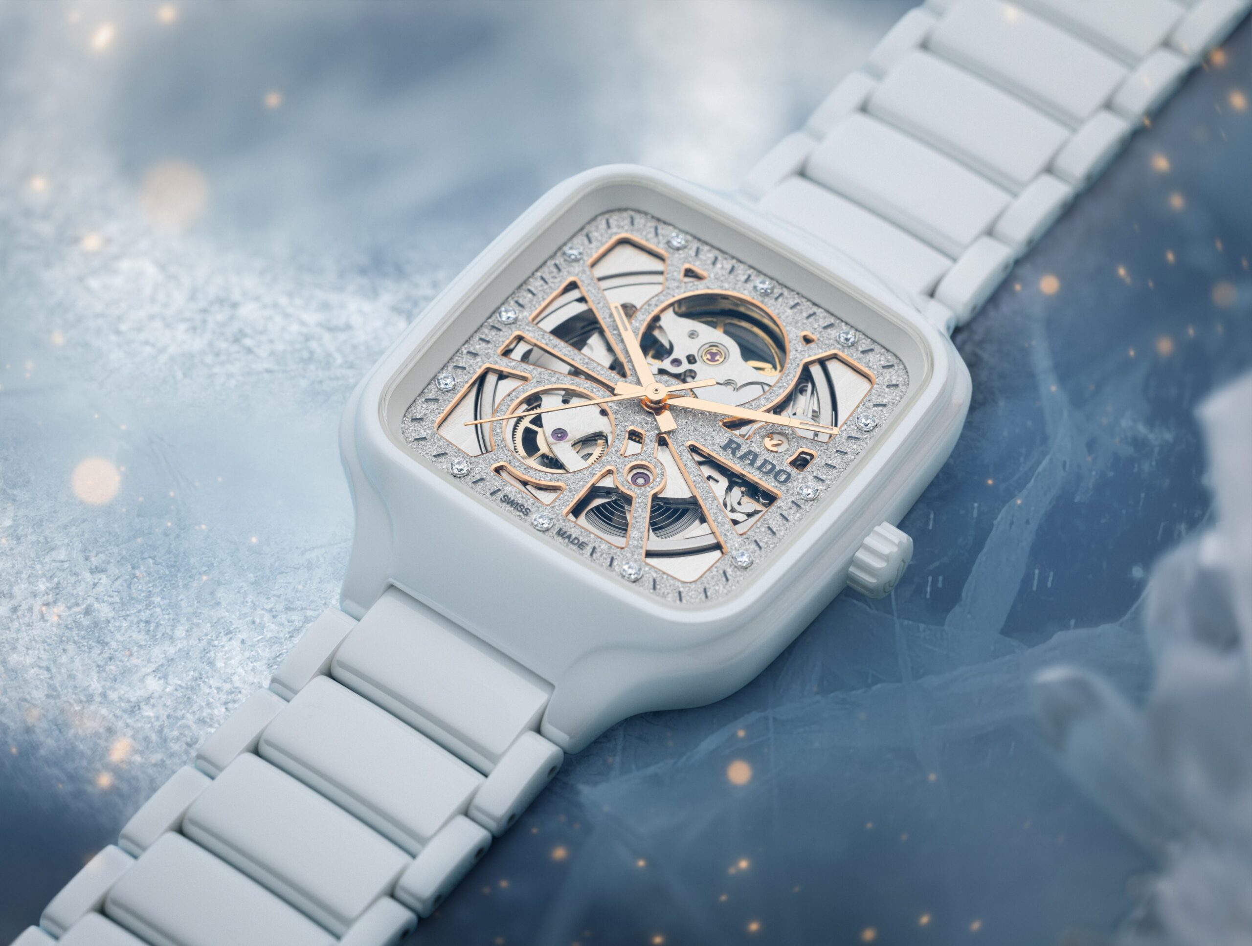Khi mùa băng giá phủ đầy tuyết trắng chực đến bên thềm, không khí mùa lễ hội rộn ràng cũng vừa đến mang theo niềm háo hức khó tả. Thời khắc rực rỡ này được Rado nắm bắt trọn vẹn thông qua hai phiên bản True Square Open Heart mới khoác vỏ gốm công nghệ cao và nạm kim cương lấp lánh.