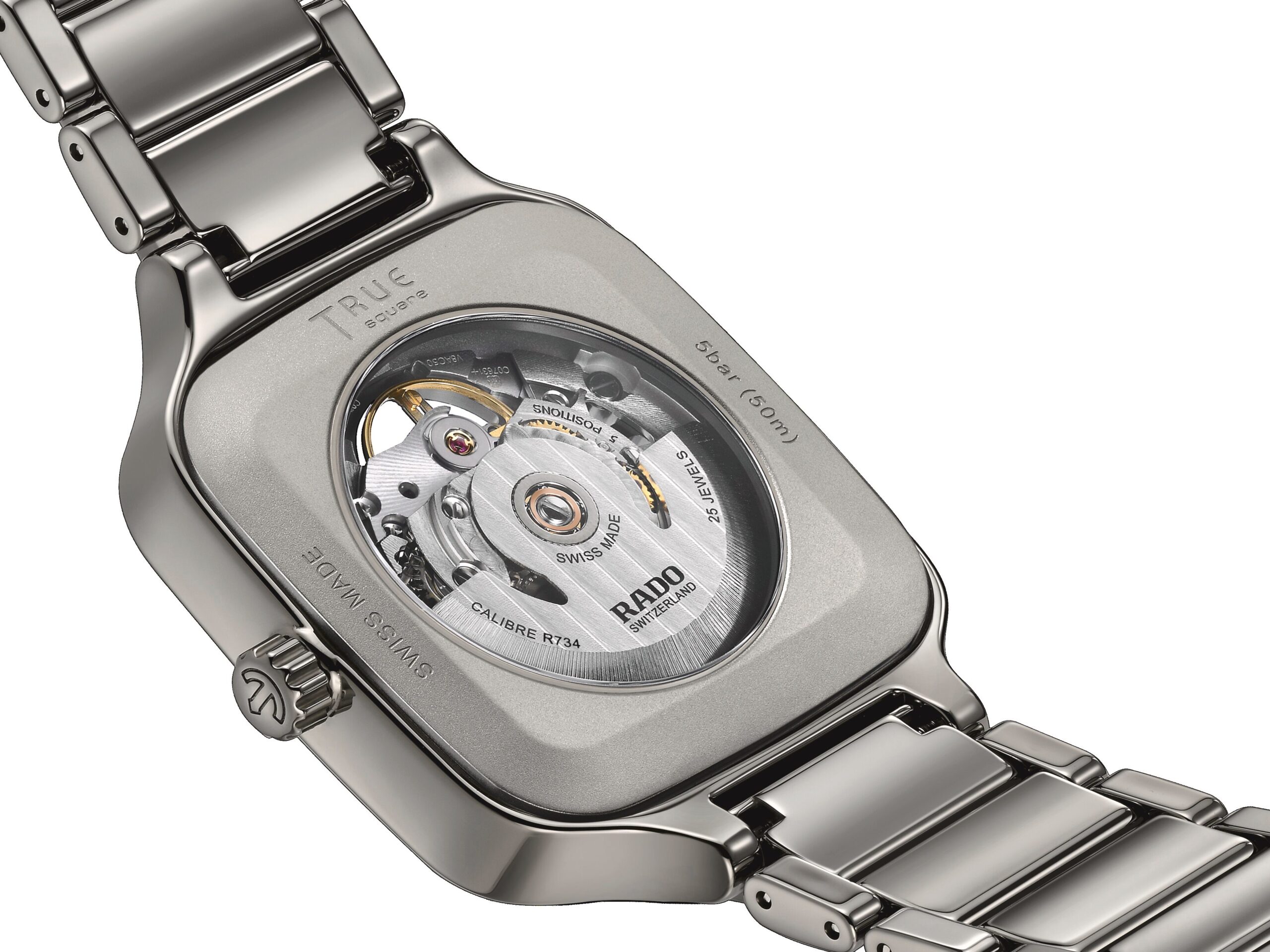 Ánh sáng trong trẻo cũng phủ lên bề mặt, tạo nên sắc ánh kim quyến rũ cả trên vỏ lẫn vòng đeo gốm trắng hoặc plasma đánh bóng. Sự chính xác chuẩn Thụy Sĩ kết hợp cùng cảm giác thoải mái từ chất liệu gốm công nghệ cao và thiết kế biểu tượng của Rado, tạo nên nét tổng thể thiết kế thanh lịch cho True Square Open Heart.