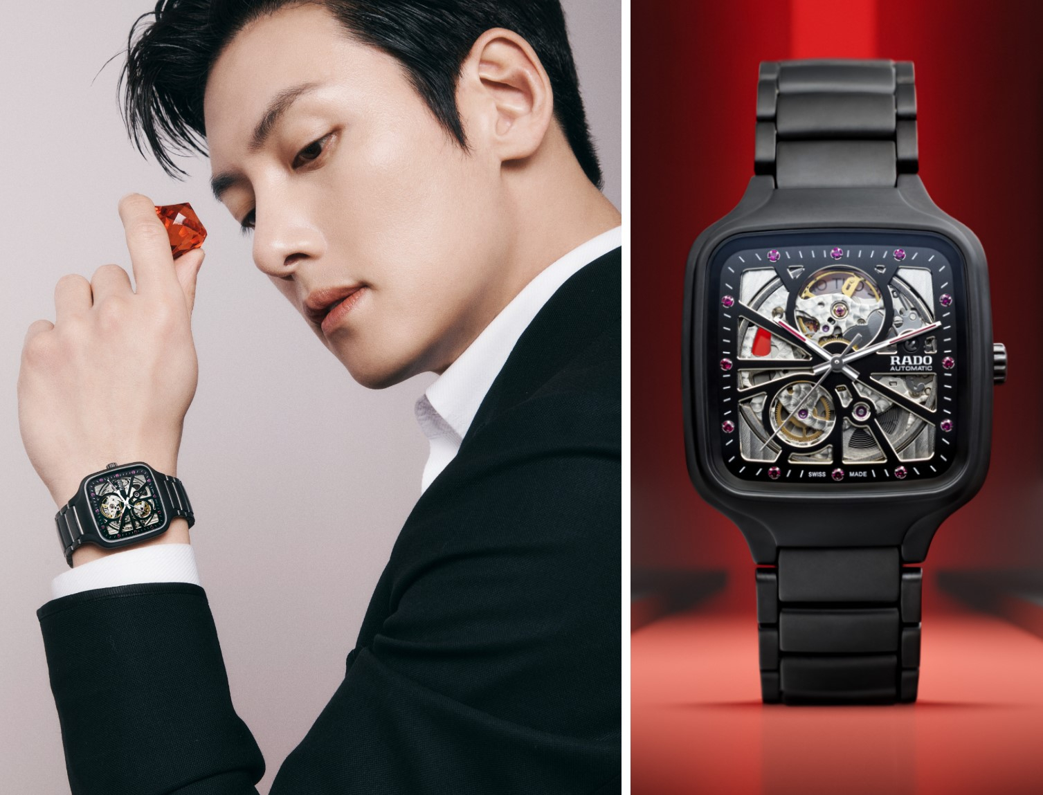 Trong chuyến thăm trụ sở Rado vào tháng 3 năm 2024, khi tìm hiểu sâu về gốm công nghệ cao – vật liệu góp phần lan tỏa danh tiếng Rado trên toàn cầu, Ji Chang-wook chia sẻ rằng ruby chính là loại đá quý theo tháng sinh của mình. Đồng thời, sắc đỏ trong văn hóa Hàn Quốc tượng trưng cho may mắn cùng sự che chở. Những yếu tố mang tính cá nhân và văn hóa đó đã khơi nguồn cho ý tưởng xếp đặt 12 viên ruby đỏ làm cọc số, kết hợp cùng lớp phủ đỏ Super-LumiNova® để tạo nên điểm nhấn rực rỡ mà vẫn hài hòa trong kết cấu Open Heart.