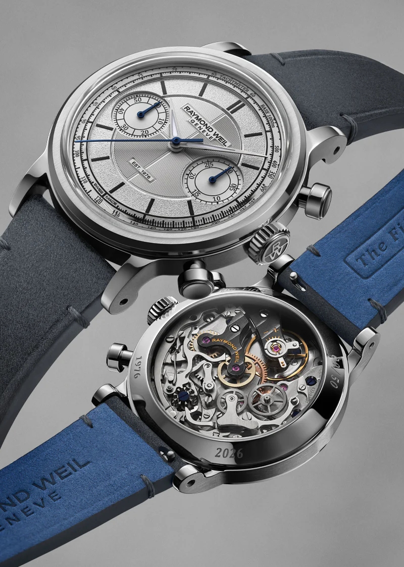 Millesime ‘The Fifty’ Automatic Bi-Compax Chronograph Sector Dial tôn vinh hành trình 50 năm cống hiến của Raymond Weil bằng kỹ nghệ thủ công, độ chính xác trong biểu đạt và sự trân trọng đối với di sản savoir-faire truyền thống. Theo đó, mỗi linh kiện, bề mặt, chi tiết đều thuộc về cỗ máy chronograph giới hạn 50 chiếc, từ mặt số chia khu đến Valjoux Calibre 23-3 phục chế, đều được hoàn thiện thủ công tỉ mỉ.
