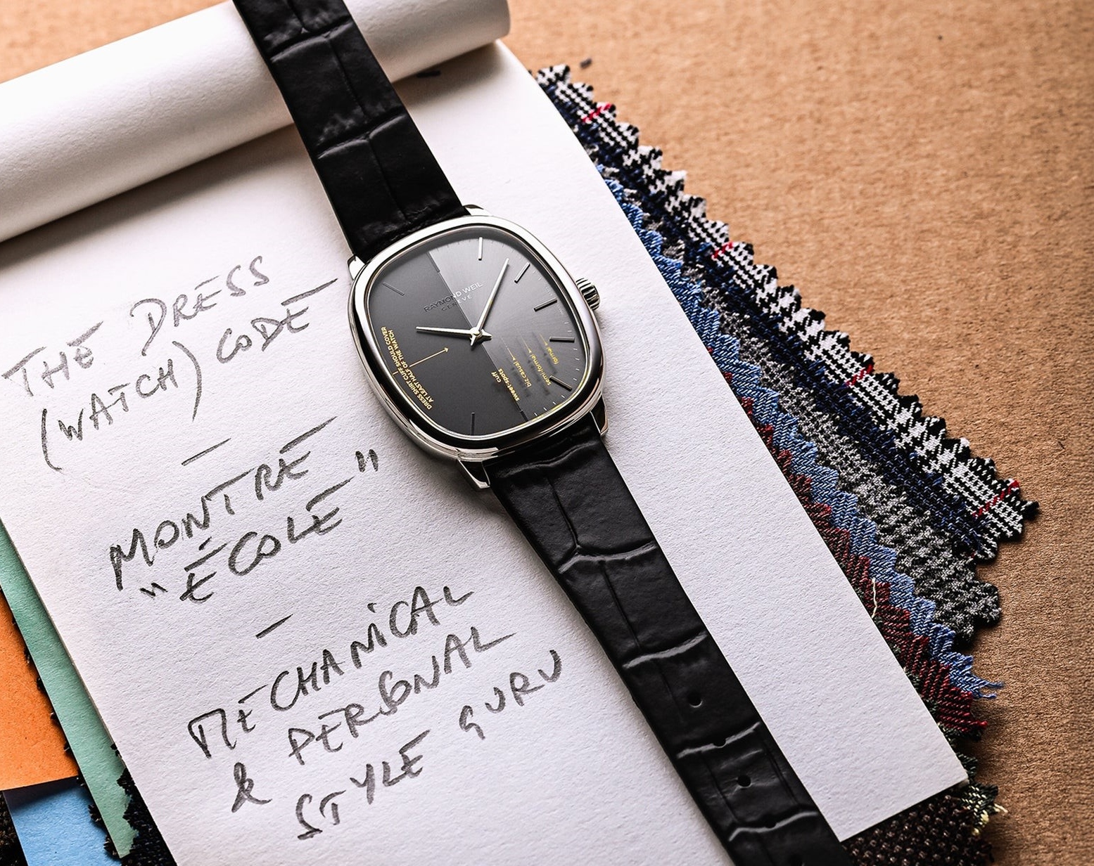 ốn mươi năm trước, ông Raymond Weil đã trình làng dáng vỏ không thuần oval cũng không hoàn toàn chữ nhật – một sự cân bằng hiếm thấy, dễ nhận diện ngay từ ánh nhìn đầu tiên và hiện vẫn đong đầy hơi thở vintage. Dưới sự dẫn dắt của Elie Bernheim – cháu trai nhà sáng lập kiêm CEO đương nhiệm, dòng Toccata được hiện đại hóa một cách tinh tế, đồng thời vẫn trung thành với chuyên môn thủ công cùng tinh thần nguyên bản đã làm nên bản sắc thương hiệu chế tác độc lập có trụ sở tại Geneva. Gợi nhắc đến âm nhạc, Toccata – xuất phát từ động từ toccare trong tiếng Ý, nghĩa là “chạm” – kết tinh cả sự điêu luyện kỹ thuật lẫn biểu đạt cảm xúc: một bản hòa tấu được trình diễn bằng đôi tay và cả trái tim.Trở thành tuyên ngôn sống động của phong cách thanh lịch pha lẫn tinh thần hài hước, Toccata Heritage x seconde/seconde/ – phiên bản giới hạn reference 2280 khai thác hai mặt của vẻ thanh lịch và độ chính xác. Trong đường kính 37,7 × 32,5x 6,95mm, vỏ thép không gỉ bao bọc mặt số xám anthracite, được phân chia thành hai ngôn ngữ thiết kế tương phản. Ở nửa bên trái, lớp hoàn thiện mờ ảo, khéo léo che giấu một số chi tiết, phản chiếu đúng tinh thần của ý niệm sáng tạo: cổ tay áo sơ mi nên che ít nhất một nửa chiếc đồng hồ. Dù vậy, bề mặt opaline anthracite mờ cùng các cọc số in chuyển nước trong suốt, bóng nhẹ vẫn đảm bảo khả năng đọc giờ hoàn hảo. Tại vị trí 9 giờ, dòng chữ màu vàng đặt ra “luật chơi” một cách dứt khoát: “Dress shirt cuff should cover at least half of the watch”.