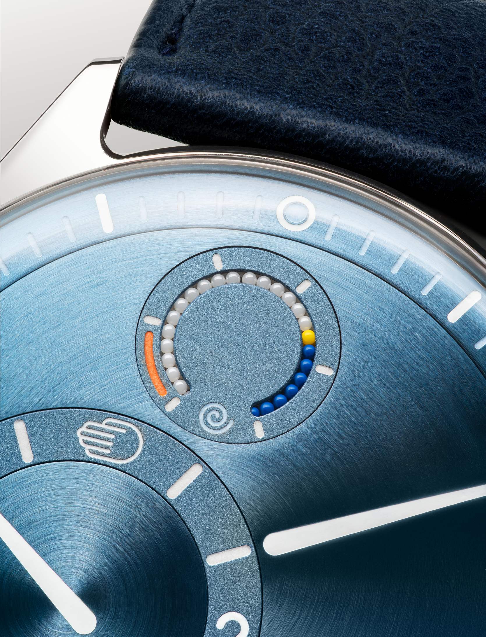 Ra mắt với ba phối màu: Pine, Sky, Latte, TYPE 11 sở hữu bảng màu riêng của các viên bi gốm chỉ báo năng lượng sáng – tối, cùng điểm đánh dấu giây đồng màu, tạo nên cá tính riêng biệt. Bốn lựa chọn dây đeo hoàn thiện tổng thể gồm da, cao su, dây lai da – cao su và dây lưới titanium Milanese ra mắt tại Watches and Wonders Geneva 2026 – một lựa chọn hiếm trong chế tác đồng hồ khi kết hợp trọng lượng nhẹ, độ bền vượt trội cùng khả năng thoáng khí.