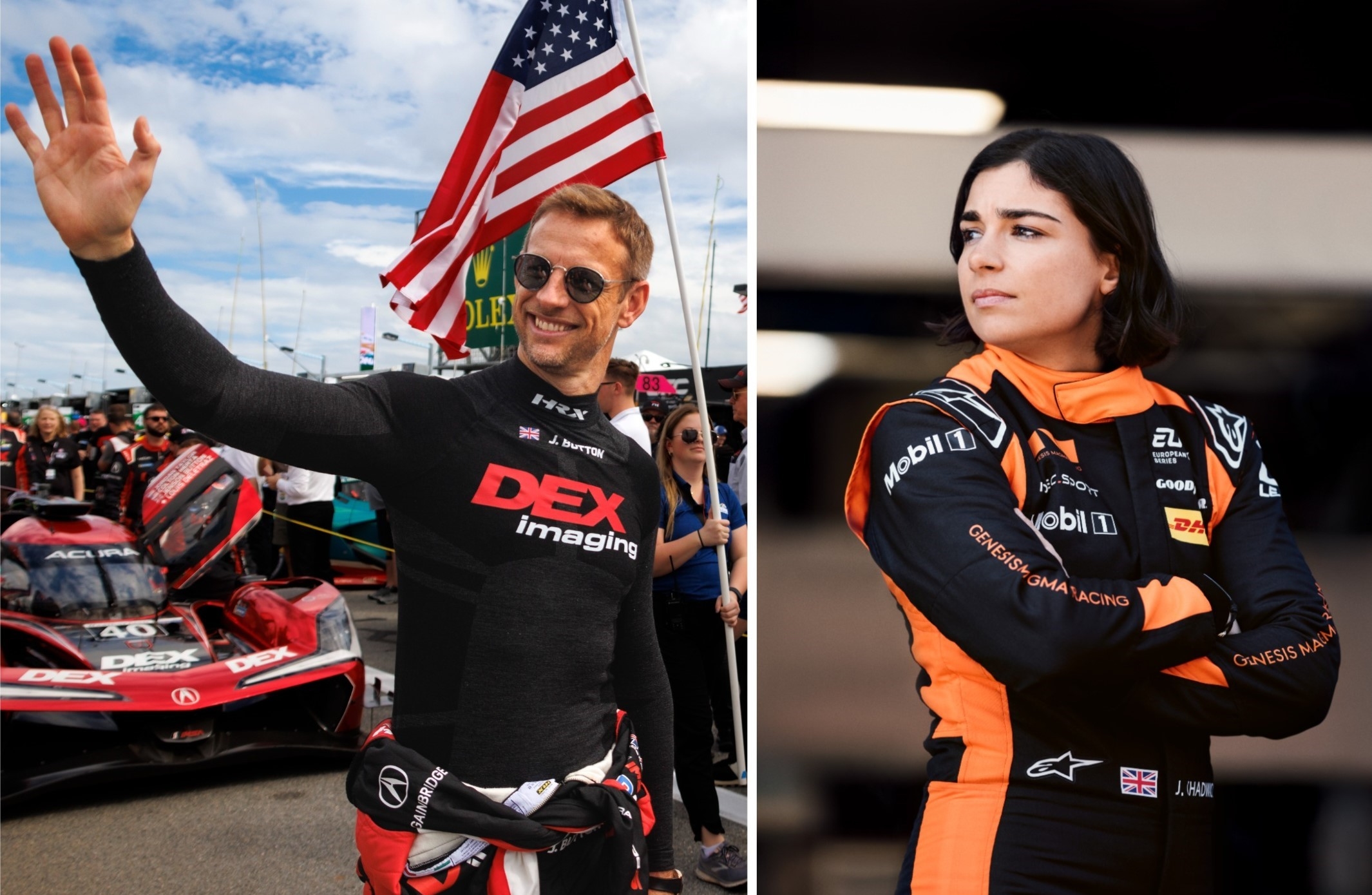 Rolex Testimonee Jenson Button (trái) và Rolex Testimonee Jamie Chadwick (phải)
