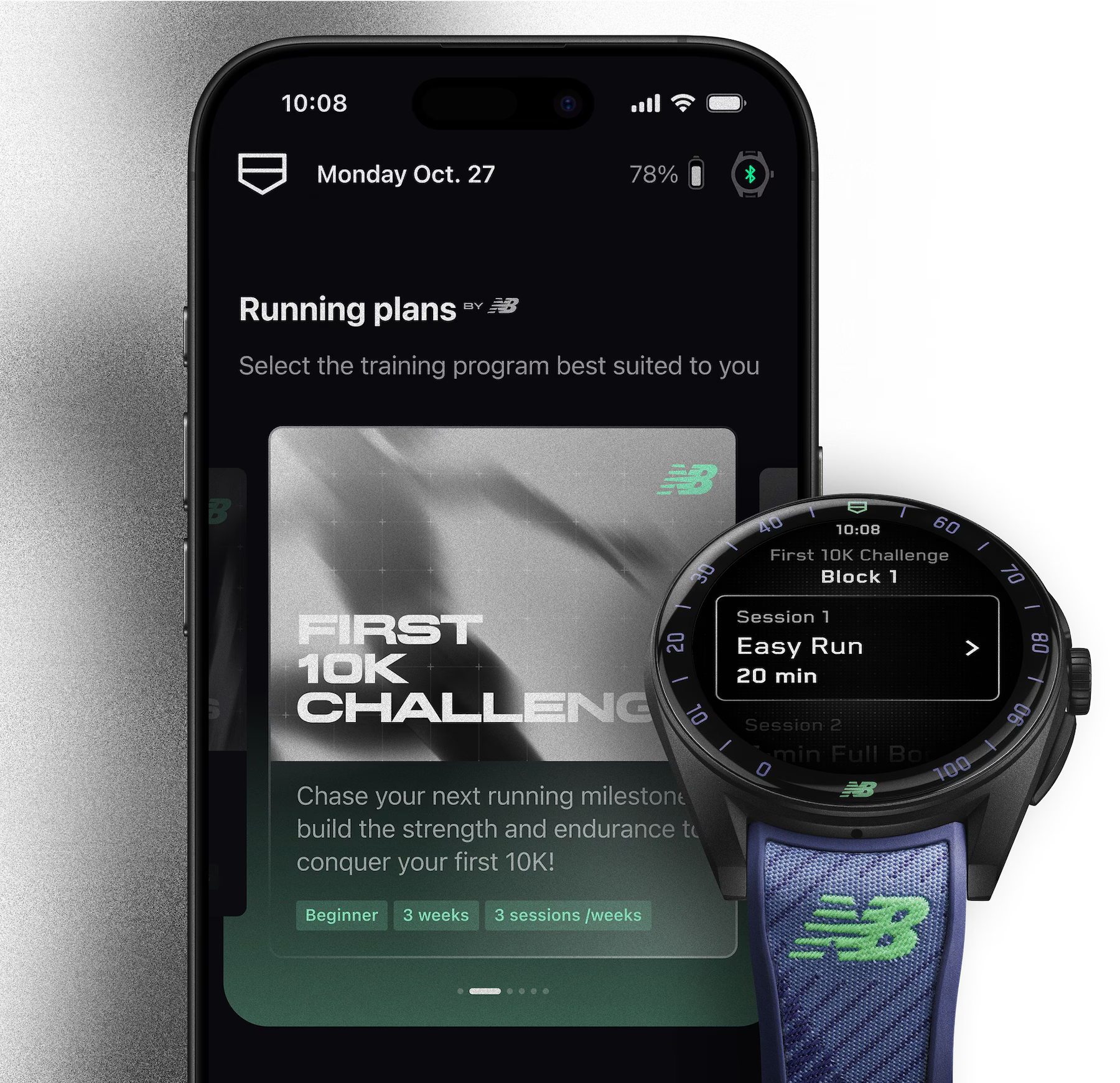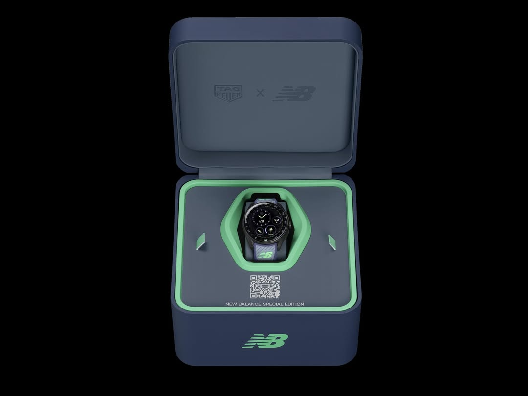Nhẹ nhưng bền bỉ, với bề mặt hoàn thiện phun cát, vỏ 40mm cấu thành từ titanium loại 2 phủ DLC đen bắt chặt vòm kính sapphire bảo vệ màn hình hiển thị. Dấu ấn thiết kế độc quyền được khẳng định bằng logo New Balance khắc ở vị trí 6 giờ. Ôm chặt cổ tay, dây cao su hai chất liệu sáng tạo nổi bật logo New Balance màu xanh thêu nổi, lớp vải dệt lấy cảm hứng từ giày thể thao của New Balance, cùng đệm lót êm giúp tăng độ vừa vặn và thoải mái trong mọi hoạt động. Được vận hành bởi TAG Heuer OS – hệ điều hành và giao diện người dùng độc quyền phát triển hoàn toàn nội bộ, chiếc smartwatch này tích hợp sáu chương trình huấn luyện chạy bộ của New Balance, mang đến hướng dẫn cá nhân hóa cho người chạy ở mọi cấp độ. Ngoài ra, người dùng có thể lựa chọn mặt đồng hồ New Balance độc quyền, thể hiện niềm đam mê với môn chạy bộ ngay trên cổ tay.