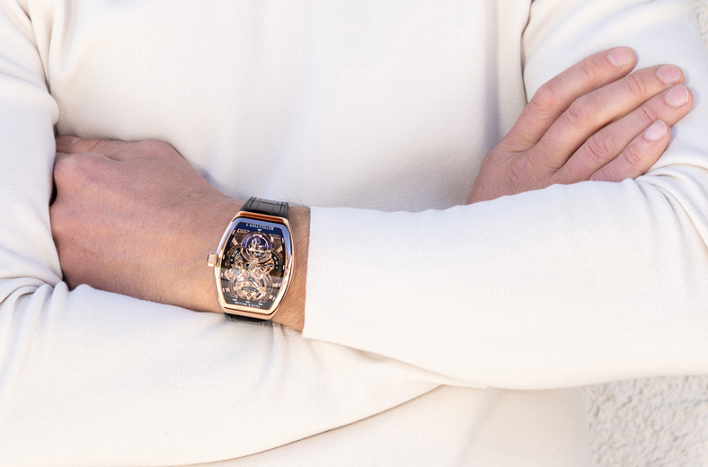 Lần đầu tiên được đặt trong vỏ Vanguard, chiếc đồng hồ tuyệt vời này sở hữu kính hình vòm bằng sapphire độc đáo ở mặt trước và mặt sau, khiến cho vị chủ nhân có thể thưởng lãm tourbillon ba trục theo cách hoàn hảo nhất.