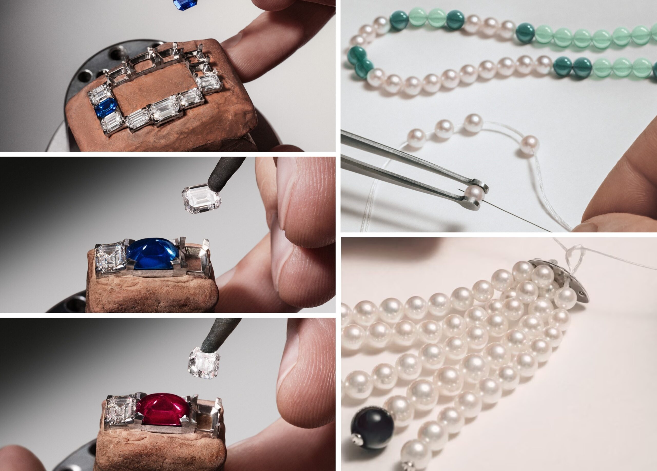 Mỗi phiên bản Grand Lady Kalla tỏa sáng với tổng cộng 39,4 carat kim cương, minh chứng cho trình độ chế tác tinh xảo của Vacheron Constantin. Tôn lên cổ tay yêu kiều, vòng tay kiểu rivière ba hàng nạm 103 viên kim cương cùng tám viên đá quý trung tâm – sapphire, ruby hoặc emerald – đạt chứng nhận cấp bởi Viện Nghiên cứu Đá quý Thụy Sỹ (SSEF), bảo chứng cho chất lượng thượng hạng. Trong khi đó, dây chuyền sautoir dài 85 cm mang vẻ đẹp cân đối hoàn hảo, kết hợp 112 viên ngọc trai Akoya xen kẽ hạt đá quý và đá trang trí, thêm duyên dáng với tua rua hài hòa. Đặc biệt, cả phần đồng hồ lẫn mặt trang sức đều sở hữu thiết kế để có thể gắn liền mạch vào vòng tay hoặc dây chuyền sautoir, cho phép người đeo dễ dàng biến hóa giữa đồng hồ, dây chuyền hay món trang sức độc lập tùy phong cách, ngữ cảnh.