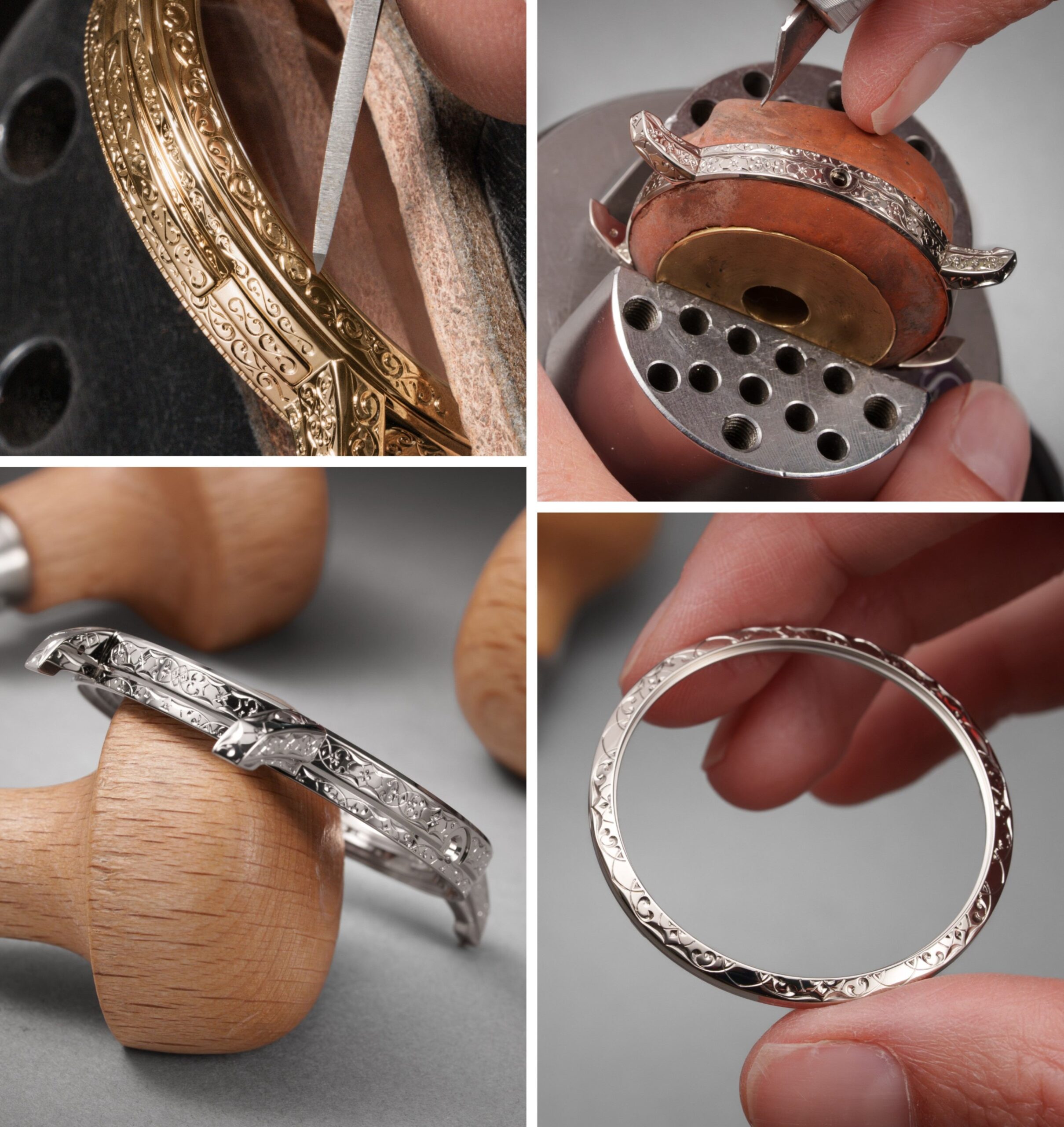 Phản chiếu chủ đề trên mặt số, vỏ vàng hồng hoặc trắng chạm khắc họa tiết tinh xảo bằng kỹ thuật khắc đường nét taille-douce. Yêu cầu 160 giờ hoàn thiện cho vỏ cùng khóa cài, những họa tiết giàu chiều sâu này được tạo nên từ hàng nghìn đường khắc siêu mảnh, chỉ 0,1 đến 0,2mm. Mức độ chăm chút tỉ mỉ thể hiện ở việc trang trí cần gạt kích hoạt minute repeater.