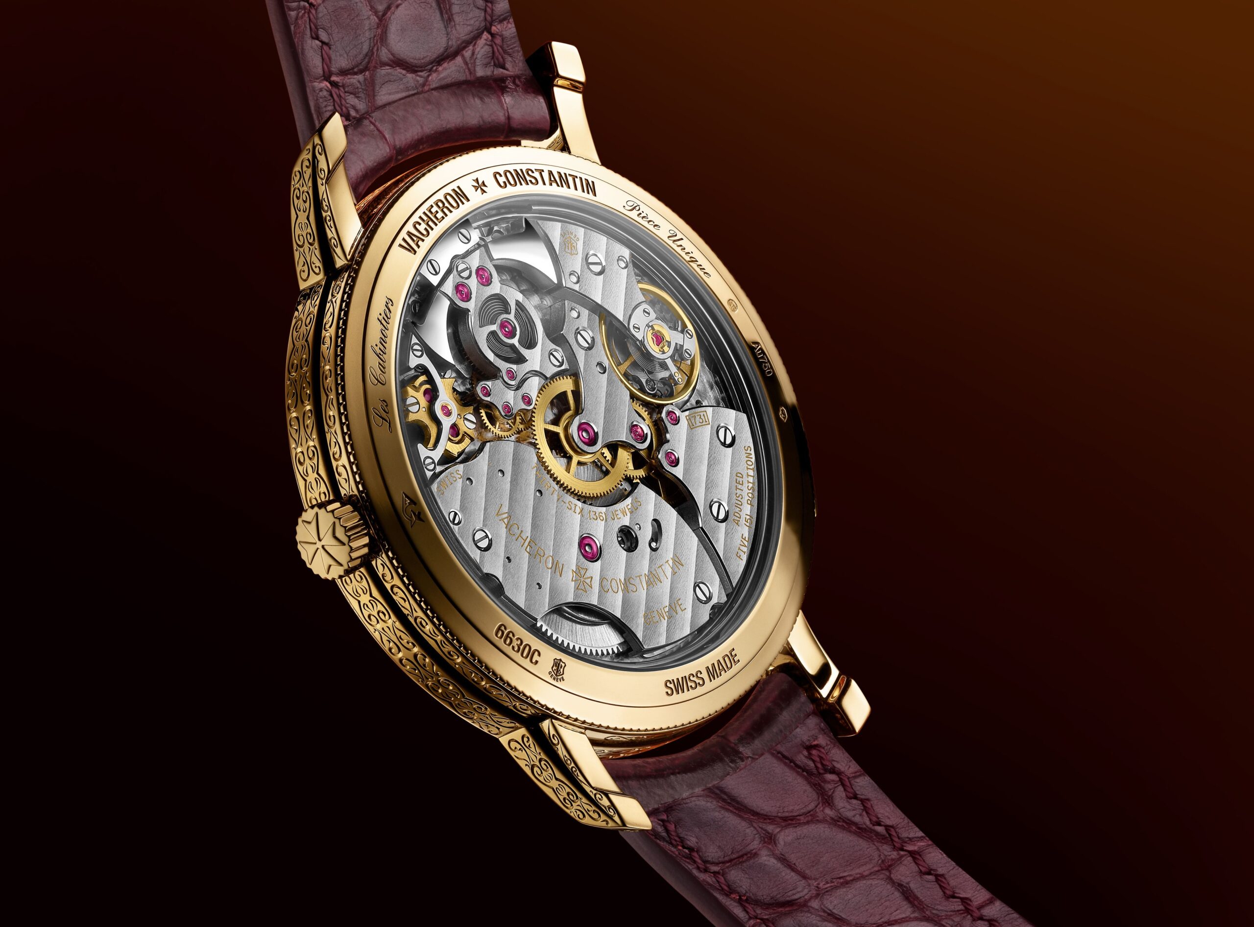 Qua mặt sau kính sapphire, toàn bộ kiến trúc máy thu hút ánh nhìn vào vân perlage, Côtes de Genève, các đường vát cạnh thủ công cùng chi tiết hình thập tự giá Malta, phản ánh mức độ hoàn thiện tinh xảo mà Vacheron Constantin dành cho từng bộ phận, dù là nhỏ nhất.