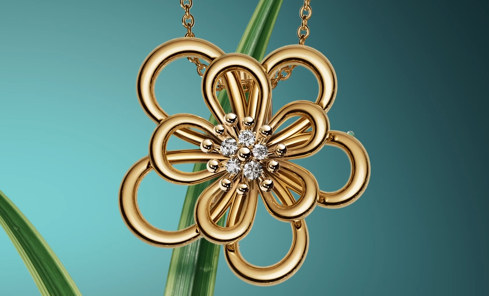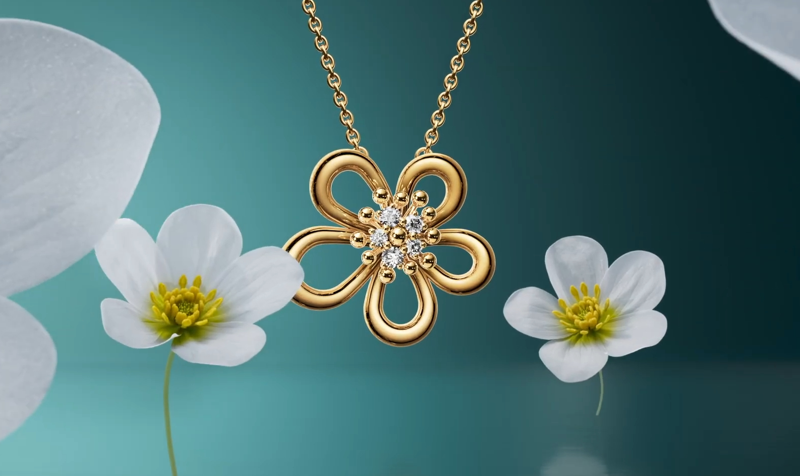 Bắt sáng một cách uyển chuyển, mỗi cánh hoa cấu thành nên mặt dây chuyền Flowerlace Pendant uốn cong thanh thoát, kết thành một đóa hoa tròn rạng ngời. Vẻ quyến rũ của tạo vật được nâng tầm bằng 5 viên kim cương trắng thượng hạng.