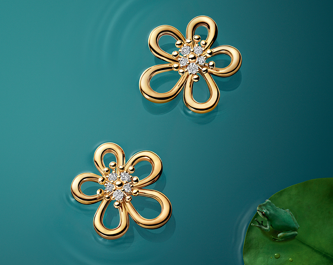 Mô phỏng đóa hoa đang âm thâm bung nở, đôi hoa tai vàng vàng 18K Flowerlace càng thêm rạng rỡ với “nhụy” vàng xen kẽ 10 viên kim cương trắng. Tạo vật bám chặt vành tai người đeo nhờ chốt kiểu kẹp với chân cài tháo rời cũng bằng vàng vàng.