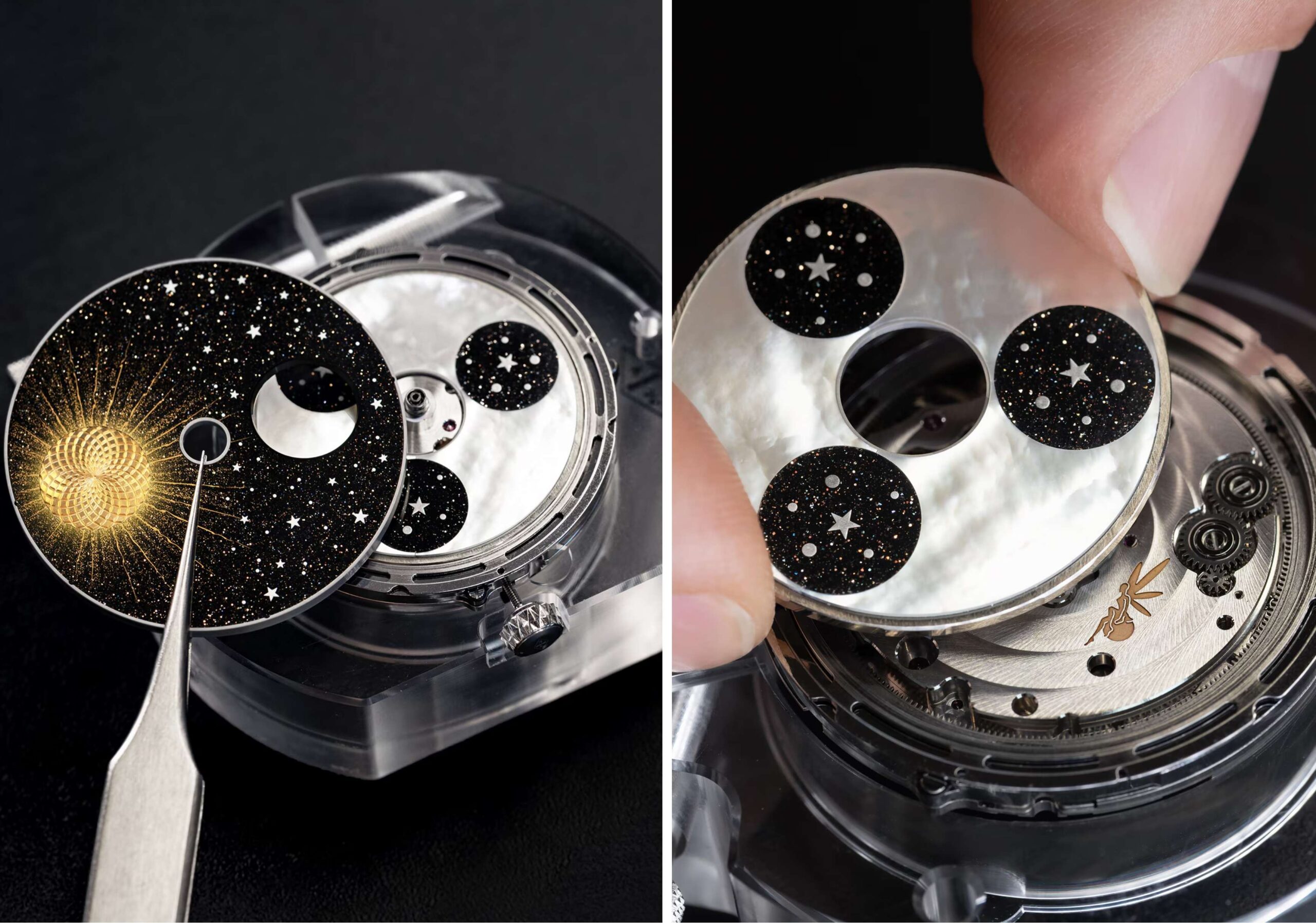 Thành tựu kỹ thuật còn đi kèm yêu cầu tối ưu trọng lượng của các đĩa xoay, nhằm giúp chuyển động diễn ra nhẹ nhàng và hạn chế ma sát. Qua nhiều tháng thử nghiệm, các nghệ nhân đã tạo nên một hoạt cảnh chuyển động theo yêu cầu cực kỳ mượt mà, cho phép chủ sở hữu quan sát chu kỳ Mặt Trăng bất cứ khi nào mong muốn. Những bộ phận cấu thành mặt số cũng được làm mỏng hơn, nhằm giữ trọn vẻ sâu hút của khung cảnh trên mặt đồng hồ. Thiết kế công thái học toàn diện còn bao gồm hệ thống chỉnh giờ cùng điều chỉnh lịch tuần trăng, đều có thể thực hiện qua núm vặn.