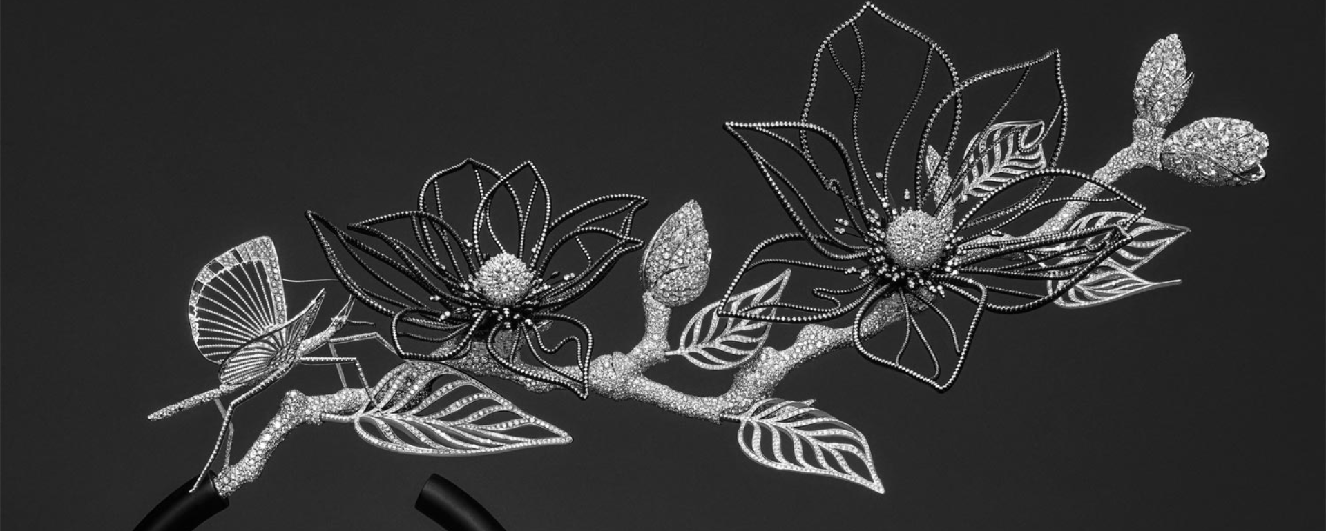 Tác phẩm kỳ ảo này được lấy cảm hứng từ câu chuyện về Aphrodite, nữ thần tình yêu của Hy Lạp và người tình điển trai Adonis. Một ngày nọ, chàng trai trẻ bị một con lợn rừng hung tợn húc chết khi đang đi săn và nằm gọn trong vòng tay của Aphrodite. Những dòng cảm xúc sâu đậm, hạnh phúc và đau khổ của cả hai đã gắn kết lại với nhau, từ đó được đội ngũ chế tác biến chuyển thành các họa tiết đính kim cương đan xen trên dây đeo làm bằng vàng trắng và vàng hồng. Sự thay đổi giữa các sắc thái màu sắc và âm lượng ba chiều được kết hợp lại trong một mô tả chân thực nhất thông qua thiết kế cánh hoa đang mở ra, để lộ mặt số khảm xà cừ màu trắng xám đầy quyến rũ.
