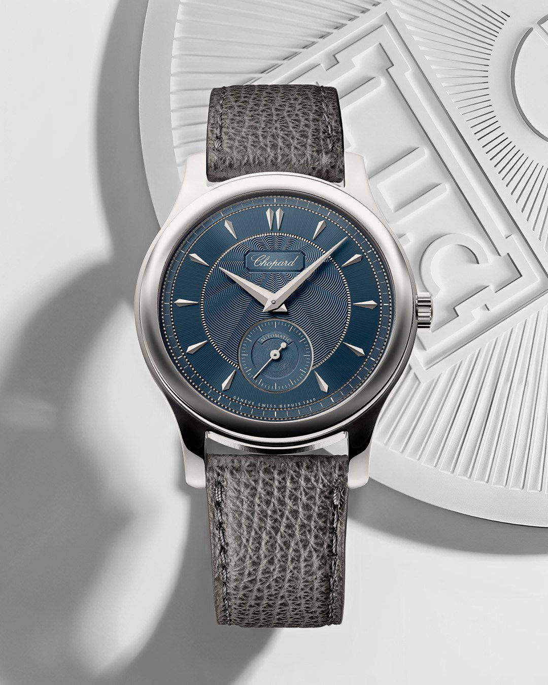 Thiết kế giữ nguyên tỷ lệ và bố cục quen thuộc, với vỏ 36,5 mm nhưng chuyển sang chất liệu Lucent Steel. Bên trong là bộ máy L.U.C Calibre 96.40-L đạt chứng nhận chronometer, phát triển từ bộ máy đầu tiên của manufacture, nay được cải tiến theo tiêu chuẩn hiện đại. Mặt số “Areuse Blue” lấy cảm hứng từ dòng sông gần xưởng sản xuất, với bề mặt guilloché thủ công kết hợp hiệu ứng sunburst. Vòng chương, thang phút và mặt số phụ giây nhỏ tại vị trí 6 giờ được hoàn thiện rõ ràng, tạo bố cục cân đối. Mẫu đồng hồ đi kèm dây da bê xám vân nổi, giữ phong cách cổ điển và gọn gàng.