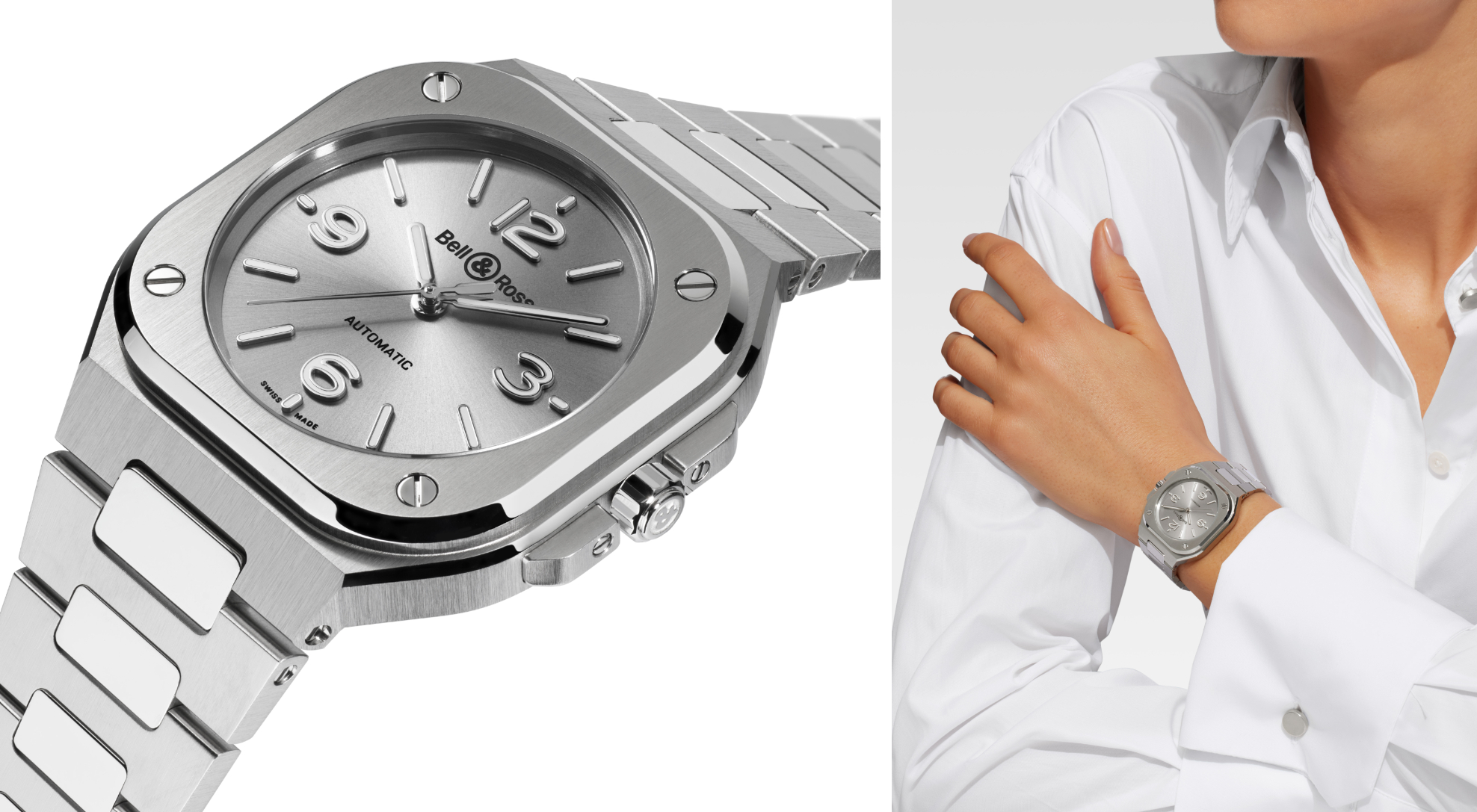 Chiếc đồng hồ BR-05 36 mm Mother Of Pearl Steel từ Bell & Ross là minh chứng cho nghệ thuật chế tác tinh xảo được gói gọn trong một thiết kế hiện đại và thanh lịch. Nổi bật với mặt số khảm xà cừ thiên nhiên loại A, chiếc đồng hồ tỏa sáng theo từng chuyển động ánh sáng. Với kích thước mặt chỉ 36 mm, dày 8.5 mm, đây là một trong những thiết kế nhỏ gọn và tinh tế nhất trong dòng BR-05. Vỏ được chế tác từ thép không gỉ với kỹ thuật hoàn thiện xen kẽ giữa chải satin và đánh bóng, tạo nên hiệu ứng ánh sáng tinh xảo trên cổ tay. Tông màu xà cừ trắng kết hợp cùng ánh thép mát lạnh mang đến một tổng thể hiện đại mà không mất đi nét mềm mại nữ tính. Bộ máy tự động BR-CAL.329 với khả năng dự trữ năng lượng 54 giờ vận hành mượt mà, chính xác. Dây đeo liền mạch từ thép không gỉ chải satin hoàn thiện vẻ ngoài năng động nhưng không kém phần sang trọng.