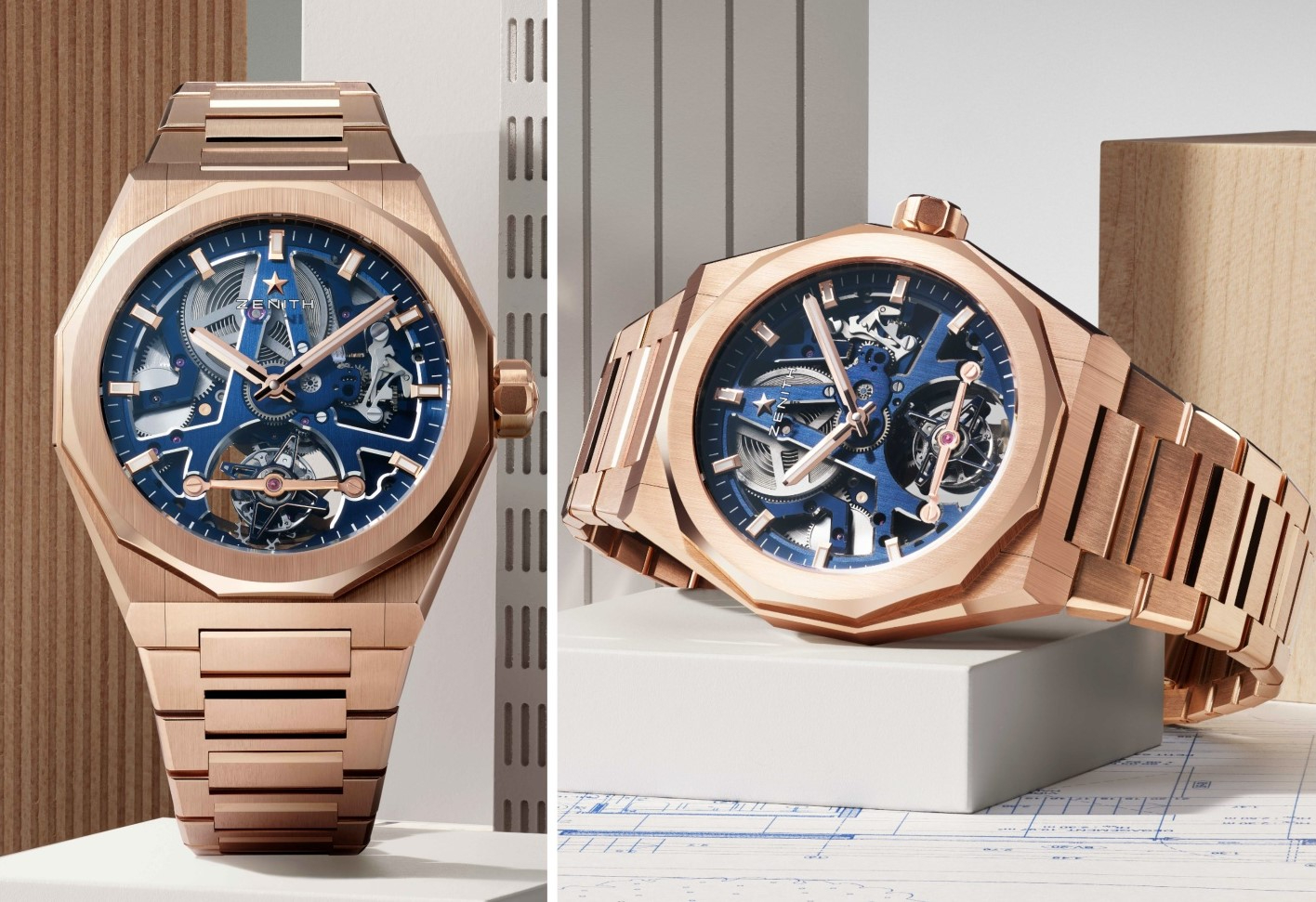Lần đầu tiên, Zenith giới thiệu phiên bản tourbillon skeleton trong bộ sưu tập DEFY Skyline, biến sự trong suốt thành cấu trúc cùng độ chính xác thành ngôn ngữ thiết kế. Kiến trúc bộ máy lộ cơ nổi bật trong sắc xanh lam mãnh liệt, tựa đường chân trời cơ học vươn lên giữa bầu trời đang sẫm tối. Được đặt trong vỏ vàng hồng vừa táo bạo vừa ấm áp, cách diễn giải open-worked này vận hành nhờ bộ máy tự động El Primero 3630 SK, với tourbillon một phút dao động không ngừng, mang đến nhịp đập sống động cho “cỗ máy thời gian”.