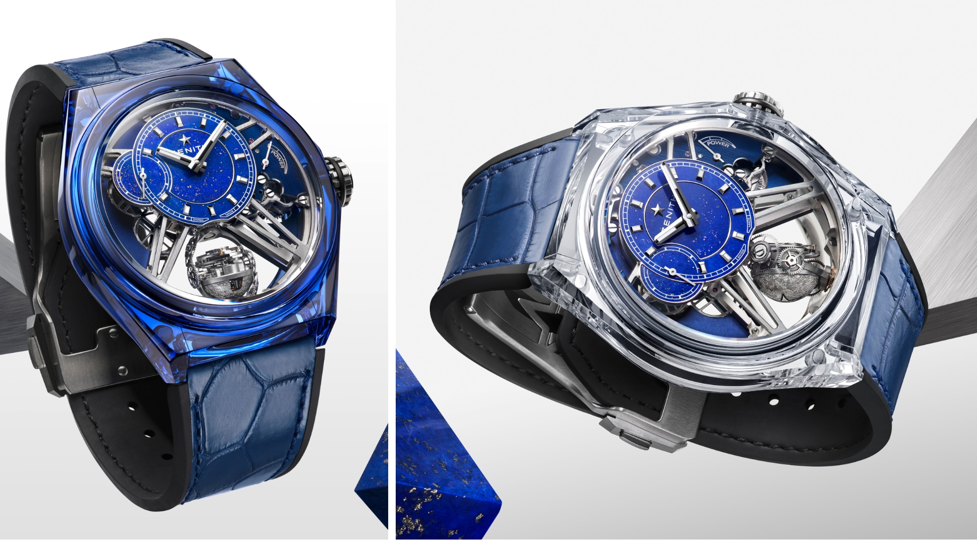 Năm 2021, Zenith tái sinh cỗ máy haute horlogerie Zero G, thiết kế lại toàn bộ kiến trúc bộ máy nhằm tăng tính trực quan và độ mở thị giác, đồng thời bao bọc trong vỏ sapphire trong suốt, cho phép chiêm ngưỡng cơ chế tuyệt mỹ từ mọi góc nhìn. Nhân dịp kỷ niệm 160 năm ngày thành lập, thương hiệu trình làng hai phiên bản DEFY Zero G Sapphire mới, đường kính 46mm, chế tác hoàn toàn từ sapphire nguyên khối màu xanh dương và trong suốt – chất liệu gần như cứng tương đương kim cương.